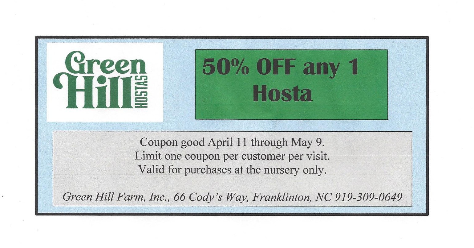 Saturday, April 11: Opening Day Be sure to bring your 50% off any one hosta coupon!